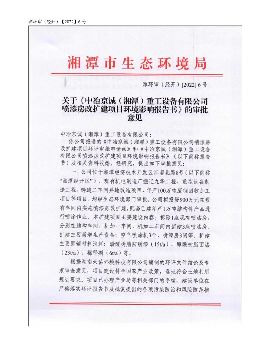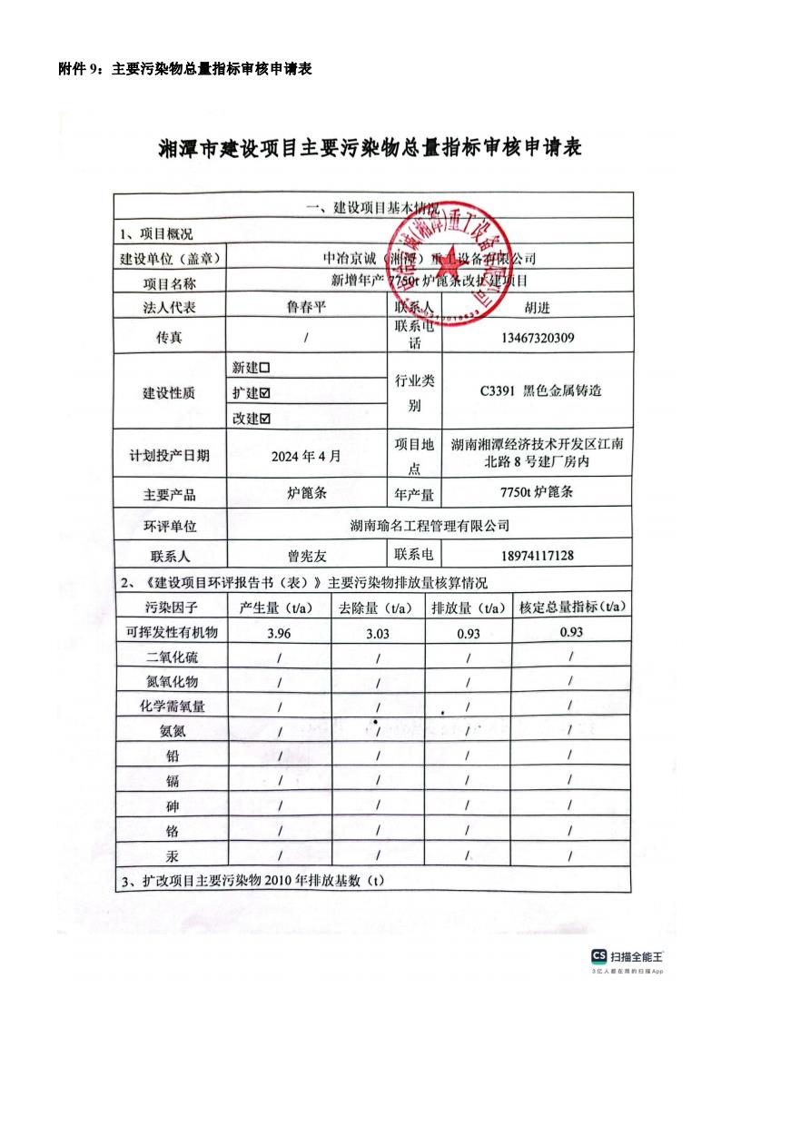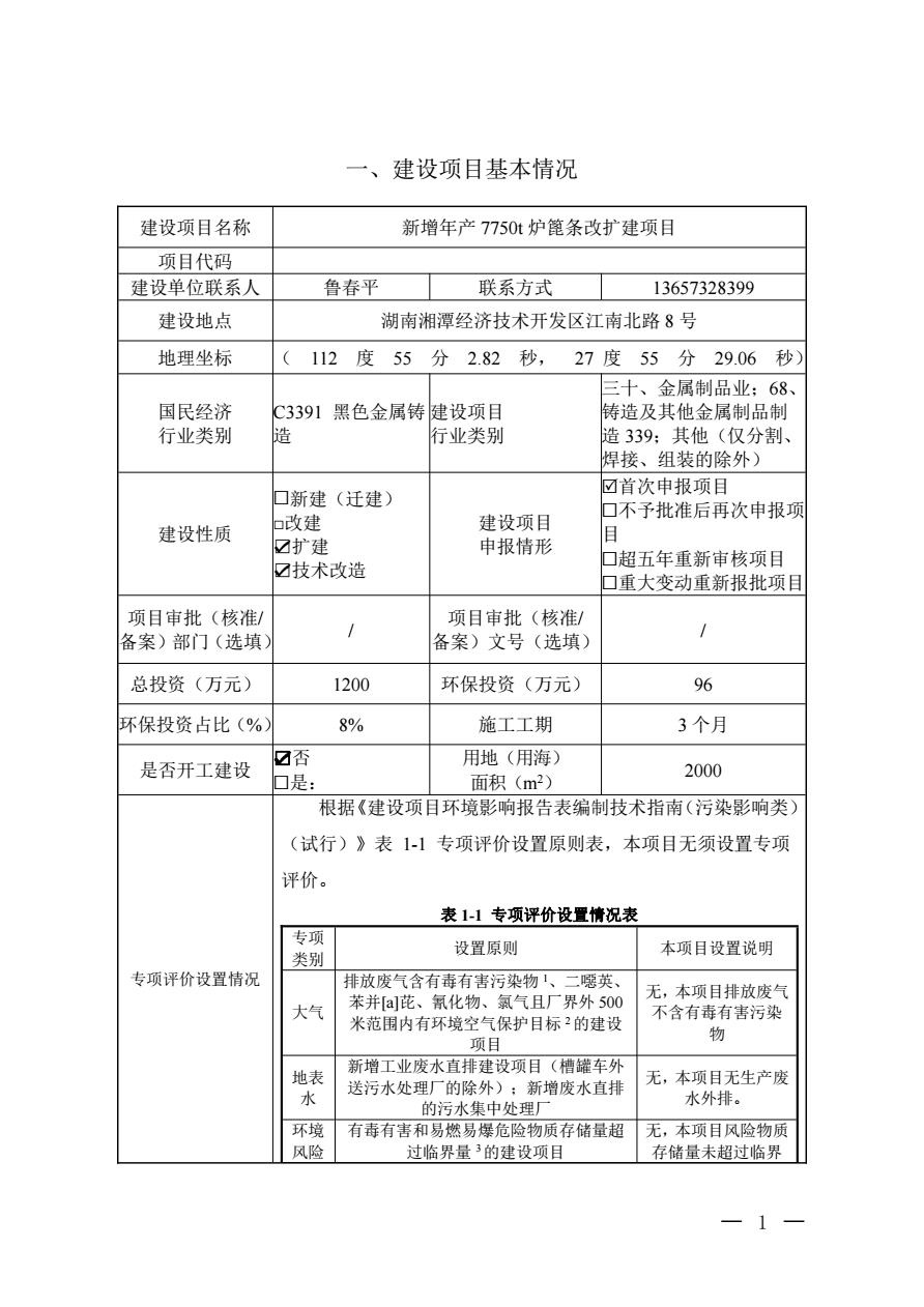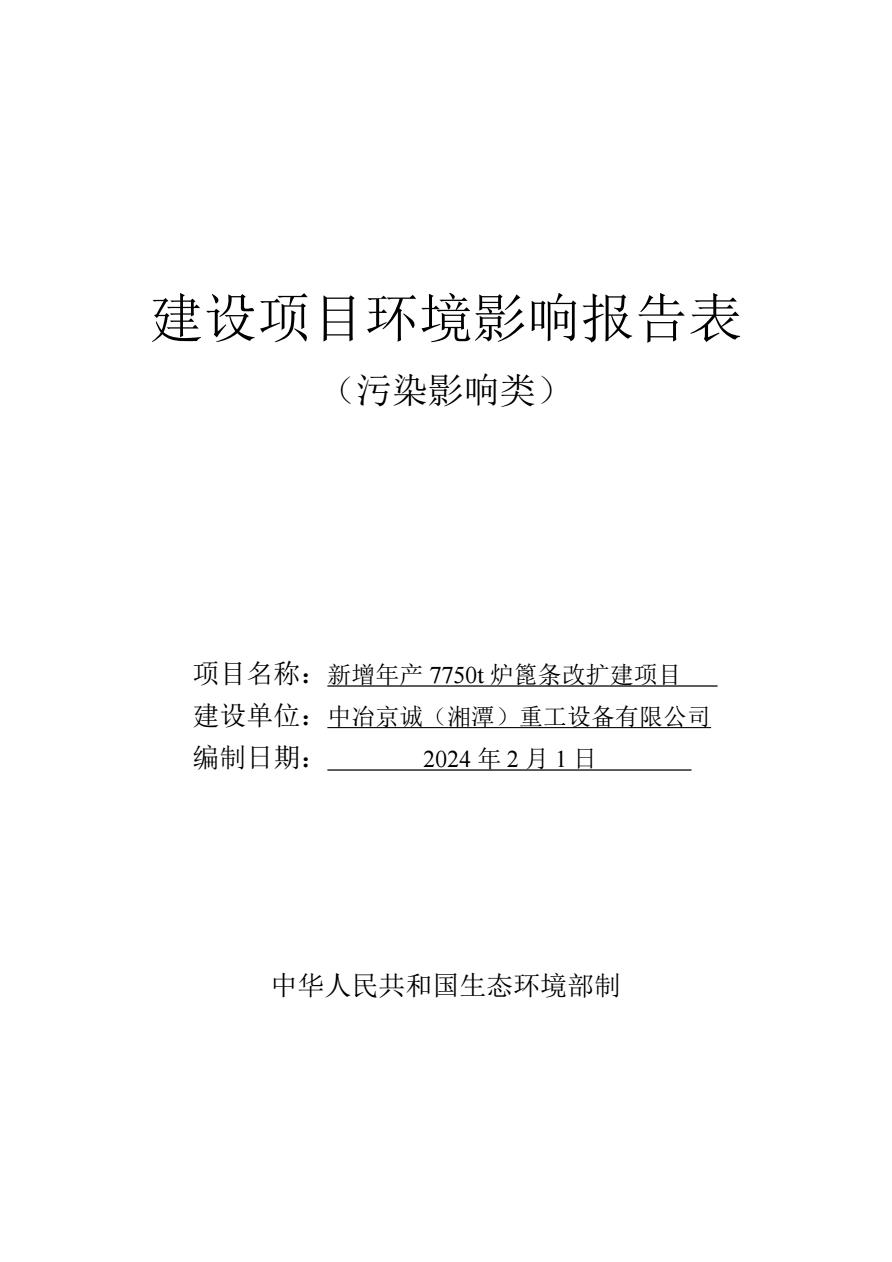 建设项目环境影响报告表(中冶京诚(湘潭)重工设备有限公司新增年产7750tt炉篦条改扩建项目3.13报批稿)