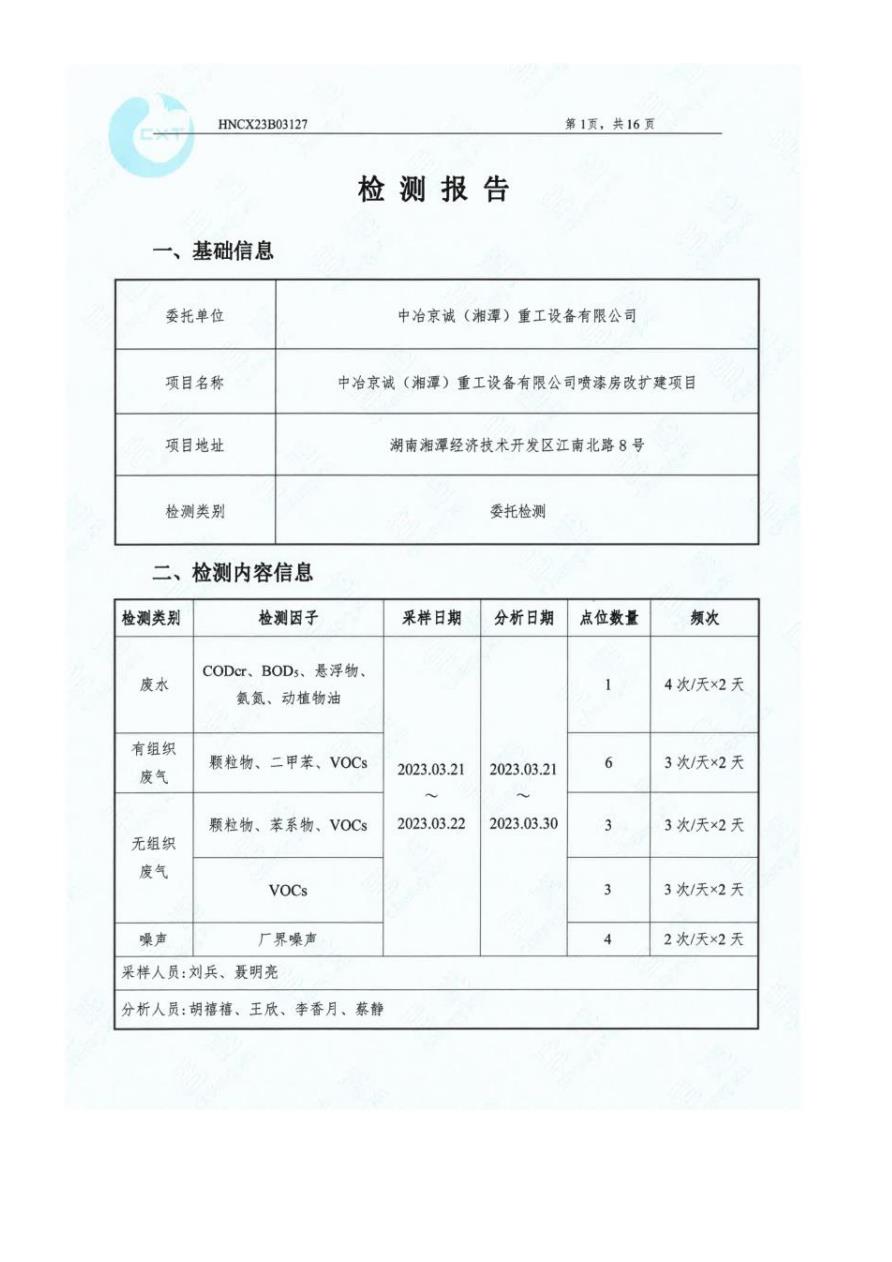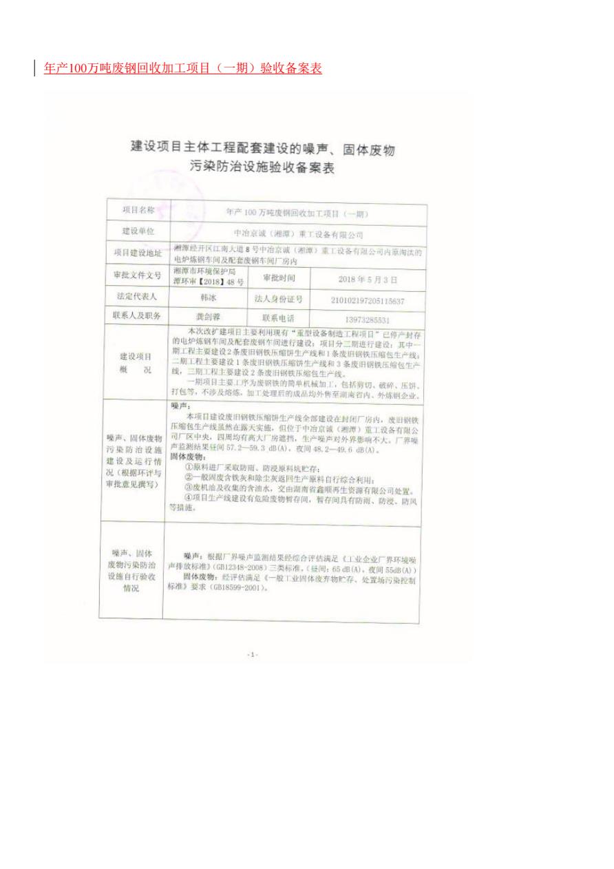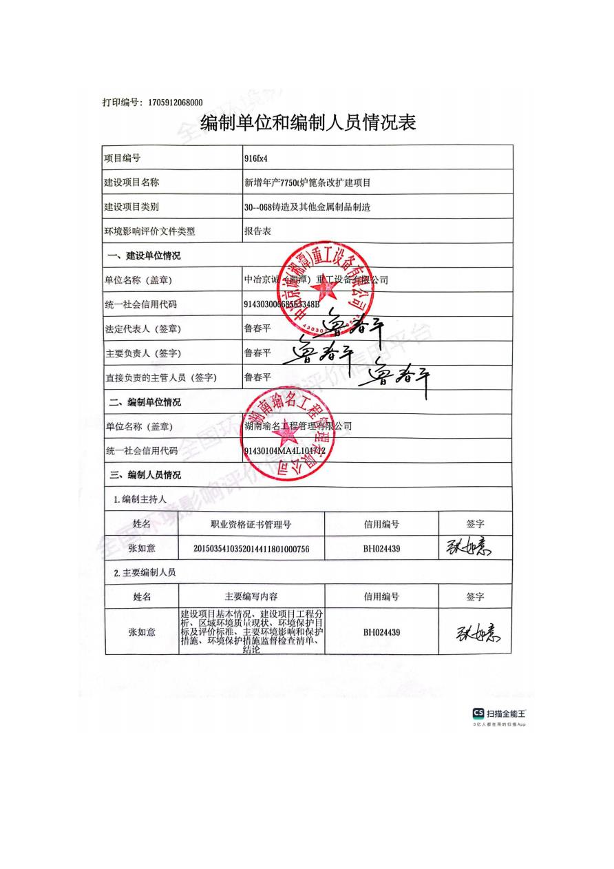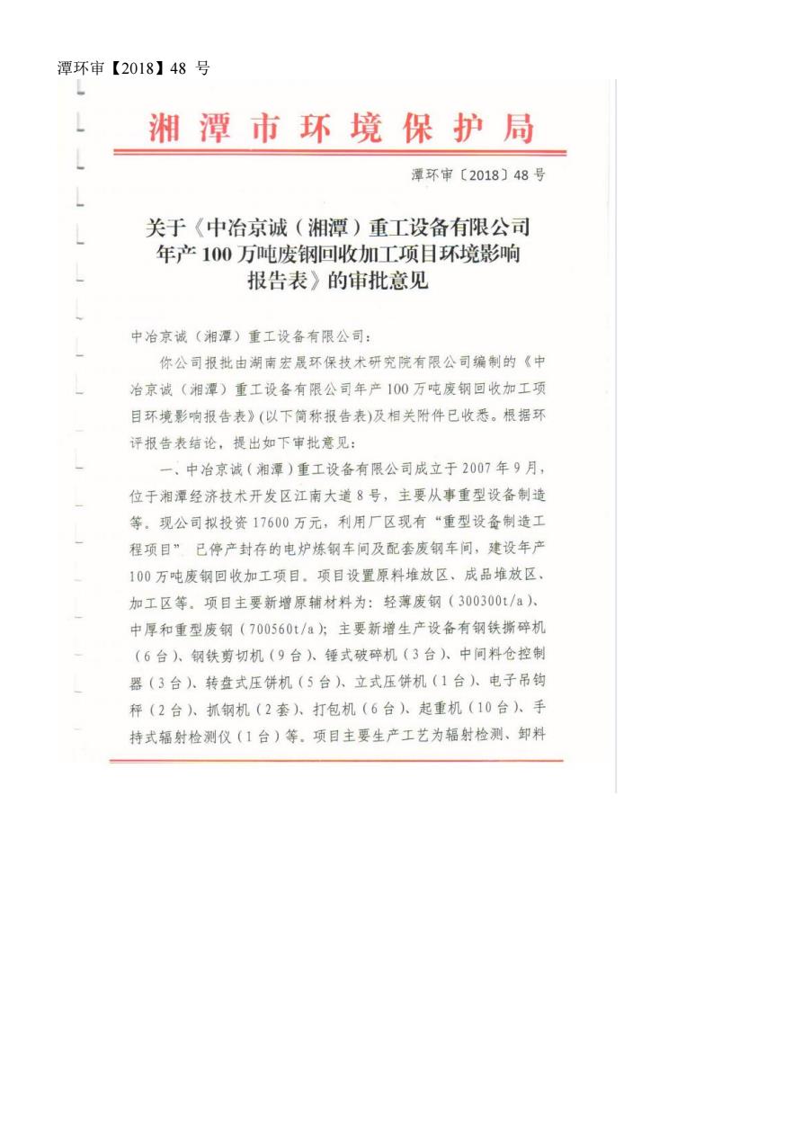 建设项目环境影响报告表(中冶京诚(湘潭)重工设备有限公司新增年产7750tt炉篦条改扩建项目3.13报批稿)