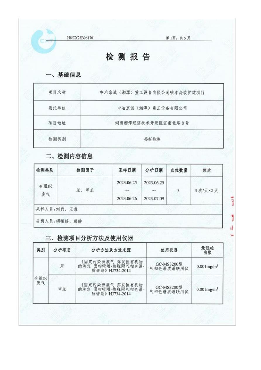 中冶京诚(湘潭)重工设备有限公司产品碳足迹报告